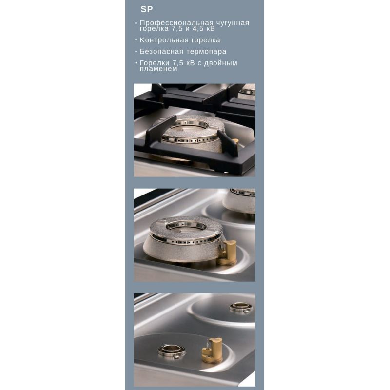 Hlavné charakteristiky Plynový sporák RM GASTRO SP7120G. Čistá hmotnosť, kg - 105, Displej - Nie, Dostupnosť pece - Nie, Farba tela - Šedá, Krajina pôvodu - Česká republika, Materiál pracovnej plochy - Liatina, Materiál rukoväte - Plastové, Materiál tela - Nehrdzavejúca oceľ, Napájanie - Plyn, Ovládací panel - Mechanické, Počet horákov - 6, Teplotné podmienky, C - +100...+300, Typ inštalácie - Poschodie, Typ zariadenia - Plynový sporák, Veľkosť - 1200x730x900, Výkon, kW - 39, Záručná doba, mesiace - 12, ostatné špecifikácie telefonicky: +38(067) 5710158.