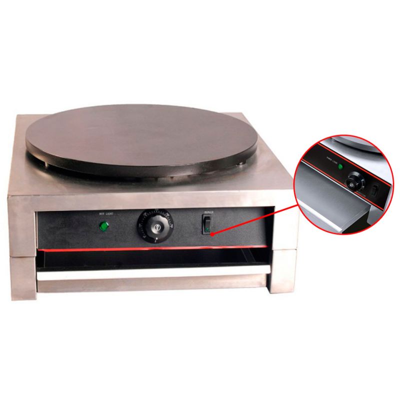 Podávajte čerstvé, lahodné palacinky pridaním elektrického palacinkovača Altezoro KZ-HP-1 do svojho vybavenia. Protišmykové nožičky zaisťujú, že zariadenie počas varenia nekĺže a nepoškriabe vašu dosku. Okrem toho je prístroj vybavený jednoducho ovládateľným termostatom, ktorý umožňuje nastaviť požadovanú teplotu jednoduchým otočením gombíka. Vyrobené z nehrdzavejúcej ocele pre jednoduché čistenie a údržbu. Doska s priemerom 400 mm je vyrobená z odolnej liatiny s antiadhéznym povlakom, ktorý zaisťuje, že vaše palacinky budú dokonale zlaté bez prilepenia. Na zadnej strane puzdra je malá priehlbina.