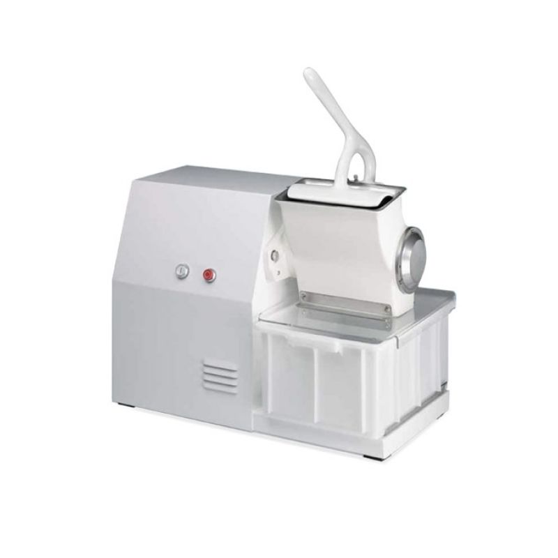 Strúhadlo na syr La Minerva C/E GF3 je vhodné pre profesionálne použitie v potravinárskych centrách, supermarketoch, hypermarketoch a stravovacích zariadeniach. Toto vysokovýkonné strúhadlo je špeciálne navrhnuté pre rýchlu výrobu vo veľkom meradle, čo uľahčuje strúhanie rôznych potravín vrátane parmezánu, tvrdých syrov, chleba, mandlí a čokolády. Veľký vstup s prítlačnou pákou robí proces strúhania efektívnejším a pohodlnejším. Bezmriežkový výstup a veľká zberná tácka uľahčujú zber a vyberanie potravín. Elektromechanická brzda a tácka so snímačom zaručujú bezpečnosť a stabilitu zariadenia. Oceľové telo strojčeka a lakovaná hliníková hlava navyše robia toto strúhadlo odolné a odolné voči vonkajším vplyvom. Verzia CE zaisťuje súlad so všetkými normami kvality a bezpečnosti.Špecifikácia