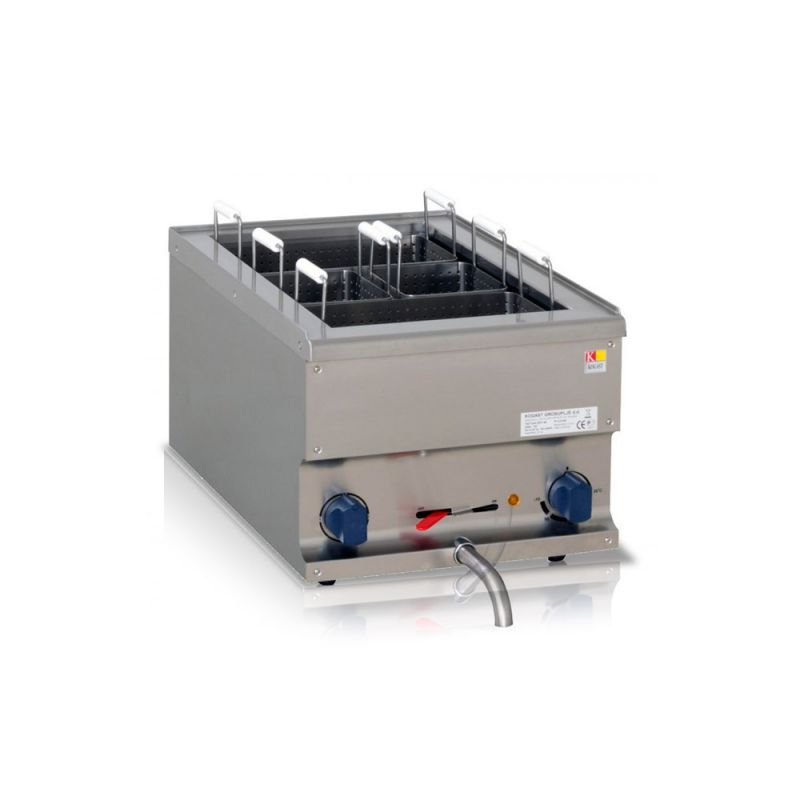 Varič cestovín Kogast EKT-T40 sa používa v gastronomických a obchodných prevádzkach na varenie všetkých druhov cestovín, cereálnych príloh, halušiek a vareniky. Korpus a vaňa so zaoblenými rohmi sú vyrobené z vysokolegovanej nehrdzavejúcej ocele. Prístroj na varenie príloh. Určené na varenie cestovín a zeleniny. Manuálne plnenie vodou. Sieťované koše v cene.