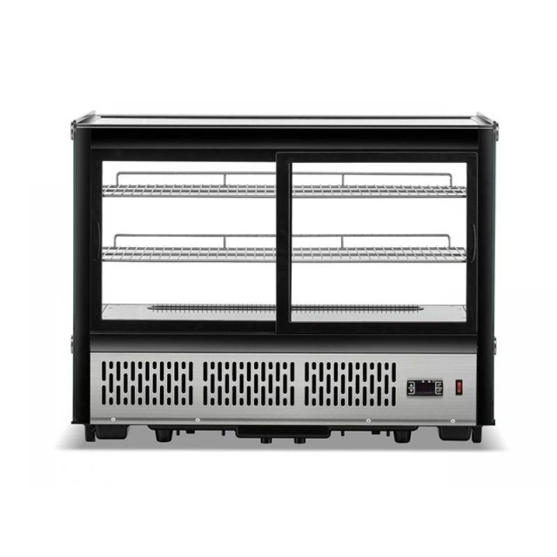 Chladiaca vitrína GoodFood RTW160L5 je stolová vitrína s dvoma policami, určená na vystavenie cukrárskych výrobkov. Telo je vyrobené z kombinácie čierneho plastu s oceľovou vložkou, ktorá poskytuje štýlový a moderný vzhľad. Posuvné dvere na zadnej strane uľahčujú prístup k potravinám. Vitrína je vybavená stropným LED osvetlením, ktoré rovnomerne osvetľuje produkty a priťahuje pozornosť zákazníkov. Chrómové police dodávajú eleganciu a jednoduchú údržbu. R600a alebo R290 sa používa ako chladivo, ktoré poskytuje efektívne a ekologické chladenie. Veľkosť balenia je 945x630x720 mm, hmotnosť 69,5 kg. Vitrína je dodávaná na preglejkovej palete, ktorá poskytuje dodatočnú ochranu pri preprave.Špecifikácia