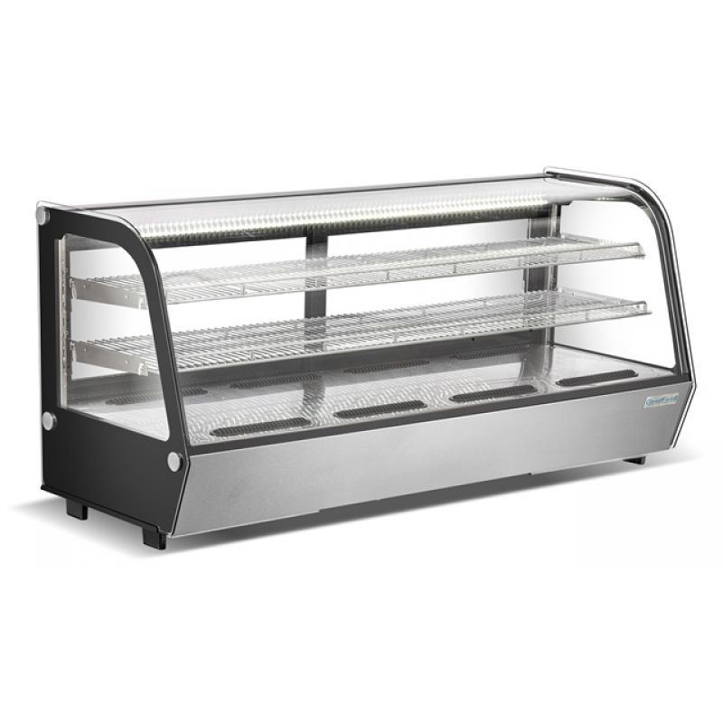 Chladiaca vitrína GoodFood RTW250L vyrobená z nehrdzavejúcej ocele je vhodná na vystavenie cukrárskych výrobkov. Telo produktu je vyrobené z priehľadného skla s oceľovými vložkami, čo mu dodáva štýlový a moderný vzhľad. Zakrivené predné sklo poskytuje vynikajúcu viditeľnosť vystavených produktov. Vo vnútri vitríny sú dve výškovo nastaviteľné police, ako aj nevyberateľná polica na spodnej úrovni. Na uľahčenie používania sú vzadu posuvné dvere. S objemom 227 litrov je vitrína vybavená horným LED osvetlením, ktoré priaznivo zvýrazňuje vzhľad cukrárskych výrobkov. Chrómové police a chrómové lemovanie dodávajú kúsku extra eleganciu. Vitrína sa ovláda cez digitálny panel, ktorý umožňuje jednoduché nastavenie teploty v rozsahu od 0 do +12 C. Ako chladivo je použité R290, ktoré zabezpečuje efektívne a ekologické chladenie. Rozmery balenia vitríny sú 1590x630x845 mm, hmotnosť v balení je 126 kg.Špecifikácia