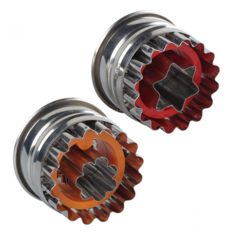Predstavujeme Vám sadu dvoch foriem na sušienky EMPIRE 8902 , ktorú vytvorila značka EMPIRE. Tieto panvice vyrobené z potravinárskej nehrdzavejúcej ocele a odolného plastu poskytujú dokonalé výsledky pečenia. S horným priemerom 50 mm, spodným priemerom 47 mm a výškou 35 mm sú ideálne na vytváranie neuveriteľných koláčikov. Vnútorný rozmer formičiek obsahuje 21mm široký kvet a 22mm širokú hviezdu. Ohromujúca oceľová farba exteriéru je doplnená červenou a oranžovou farbou interiéru, čím vytvára jedinečný dizajn. Tvary hotového výrobku sú rebrovaný kruh vo vnútri kvetu a hviezda. Tieto formy sa ľahko čistia v umývačke riadu, vďaka čomu je proces čistenia ešte pohodlnejší.Špecifikácia