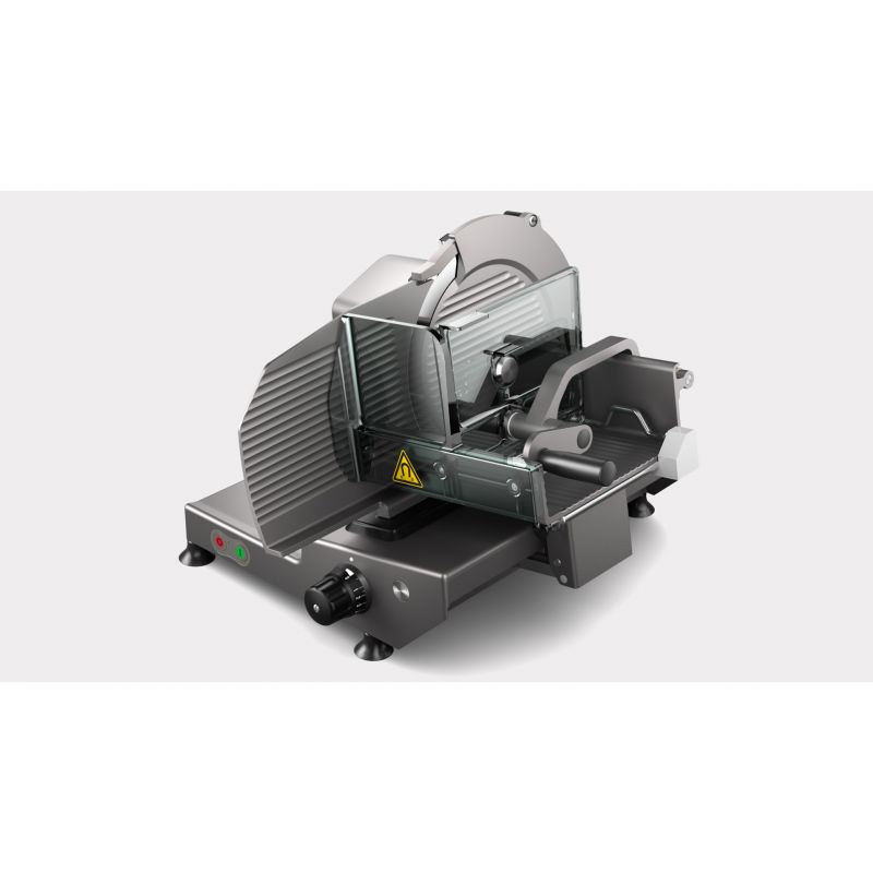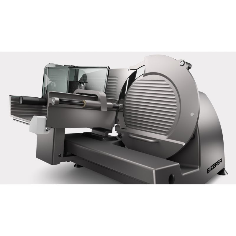 C slicer manual vertical slicer Bizerba The VSC280 is a powerful universal slicer for kitchens and trade: high efficiency in a small space. Ideal for all cases where manual slicing is required - cooked sausages and hams, chunk cheese and dry-cured products such as salami or dry-cured ham. Simple and convenient, thanks to the surface treated with Ceraclean technology, excellent sliding properties, high level of ergonomics and absolute safety for the operator. The removable parts can be easily washed in the dishwasher and then quickly and easily installed in the machine. Surfaces treated with Ceraclean technology can be easily cleaned by hand. The position of the knife at an angle of 10 degrees at maximum opening is a universal solution for products of different sizes. Precise adjustment of the slice thickness guarantees pin-thin slicing. The machines are made of precisely constructed modules using professional drive technology. Emotion drive technology ensures a long service life for the electrical modules. Operating the slicer and performing preventive maintenance, including dismantling for cleaning, is literally a breeze, without the use of auxiliary means. At the same time, the knife blade is always reliably protected! Bizerba sharpening devices are separate units. Therefore, a high level of hygiene is maintained even during slicing. Like other removable modules, these devices are also dishwasher safe.